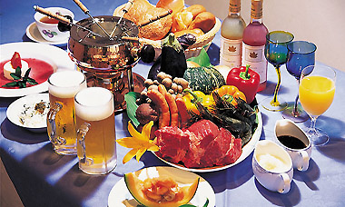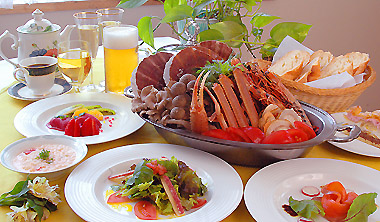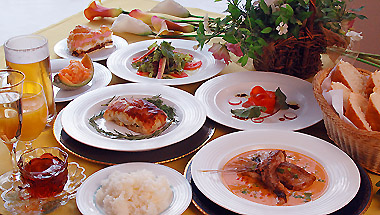 日本海の幸、信州牛そして地元の新鮮野菜を添えて