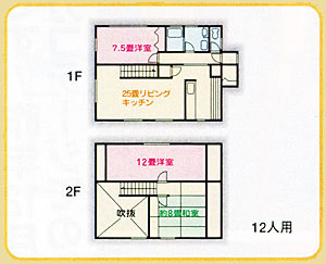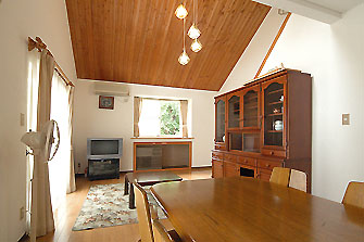 大自然にかこまれた別荘ゆったりリゾート ファミリーで!グループで! 貸別荘シルクハウスなら大満足! 3LDK● LDK25畳、洋室7.5+12畳、和室8畳 設備と備品● システムキッチン、冷蔵庫、電子レンジ、洗濯機、電話、テレビ、 シーツ・布団類、調理用具、食器、エアコン(リビング) 食事● 自炊が基本ですが、ホテルでも召し上がれます(徒歩5分、要予約) ペット● 小型ペットの同伴も可能です(冬期は不可)